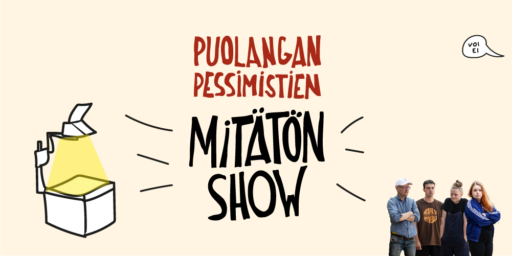 Jatkamme iltaa Aleksanterinteatterissa (Bulevardi 23-27), jossa on Puolangan pessimistien esitys Mitätön-show klo 18:30-20:30. Lippuja on varattu 20 kappaletta. Paikat varataan ilmoittautumisjärjestyksessä. HUOM! Liput on lunastettu 27.2. eli voit vielä ilmoittautua mahdolliselle peruutuspaikalle.